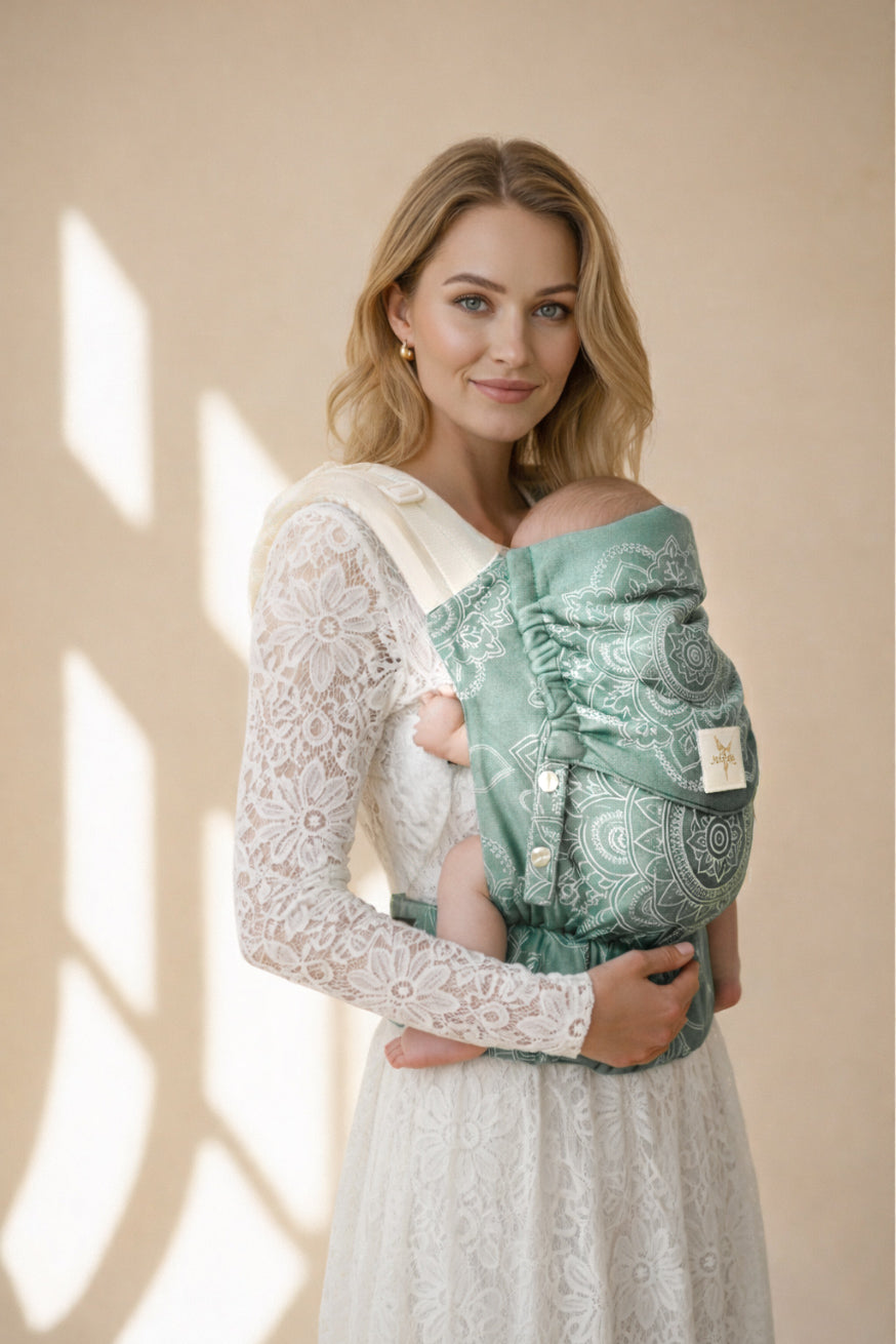 Das absolute Tragetuch-Gefühl, nur als Babytrage. Mit anschmiegsamen Tragetuch Schulterträgern, sitzt diese Babytrage immer perfekt auf dich abgestimmt!